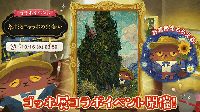 Cats Atelier” will become a supporter of the “Van Gogh Exhibition! Cats Atelier” will visit the Ueno Royal Museum on October 11! An in-app event featuring the famous painting “Itosugi” in collaboration with the Van Gogh exhibition is also held from today!