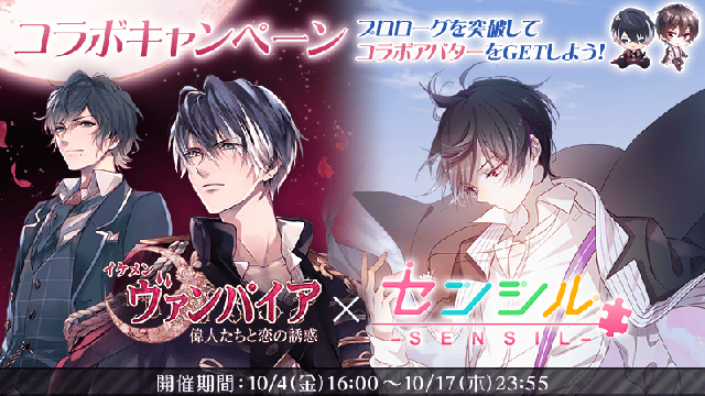 Cocone’s “Sensil” and CYBIRD’s “Ikemen Vampire” begin collaboration campaign. You can get limited collaboration items of popular handsome characters!