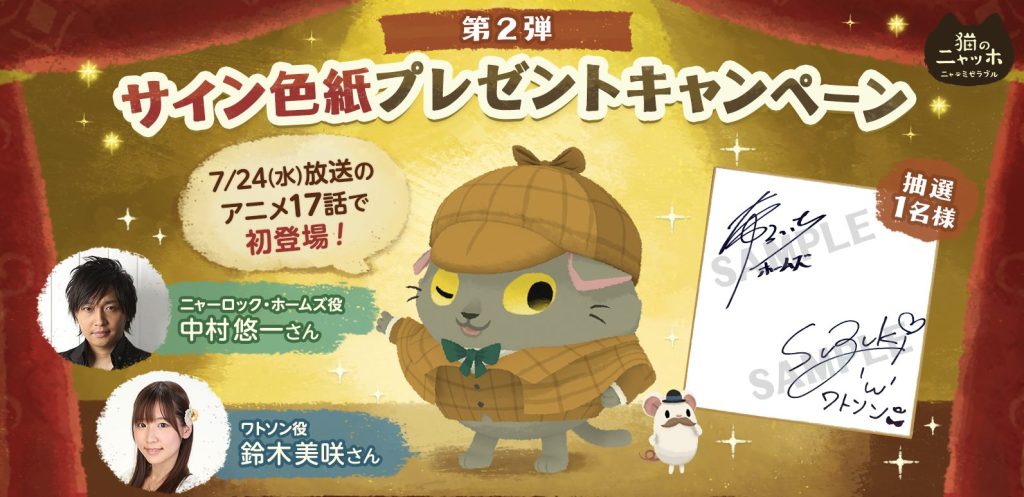 A number of popular characters from the app appear in the “Cats Atelier” anime! Popular voice actors are also included in the lineup! Yoshiyuki Shimotsuma as Leonard Fujita, Yuichi Nakamura and Misaki Suzuki as Holmes and Watson – Twitter campaign to commemorate the anime’s appearance