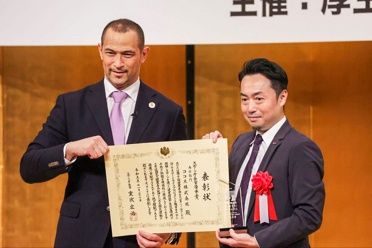 2023.11.28厚生労働省・スポーツ庁主催「第12回健康寿命をのばそう!アワード」にて、ココネのオフィス内ジムの運営が評価され“スポーツ庁長官優秀賞”を受賞