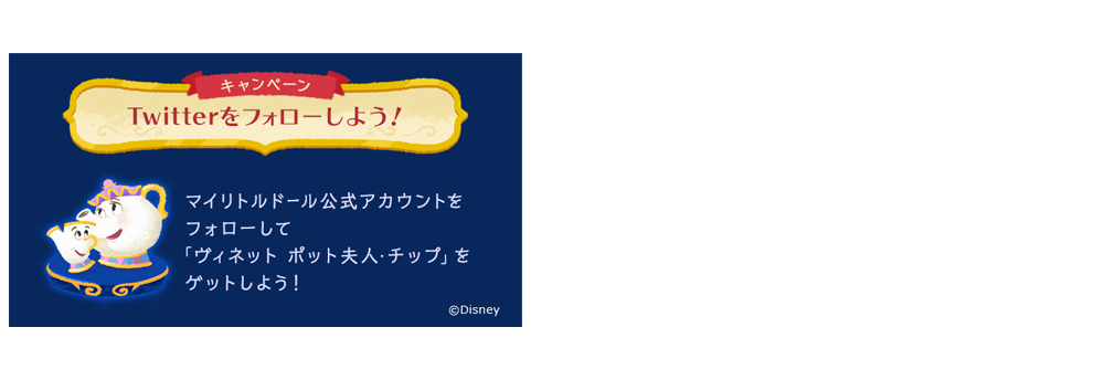 マイリトルドール公式アカウントをフォローすると、「ヴィネット ポット夫人・チップ」をプレゼント!